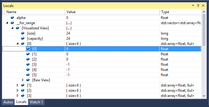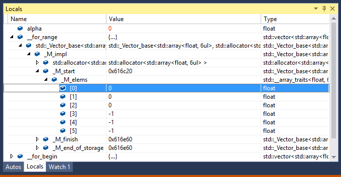 Set a break point in the for loop and run the application on Linux. If you are on Visual Studio 2017 15.1 or earlier if you were to expand the for range it would look something like this.