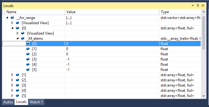 Another area we have improved in Visual Studio 15.2 is debugger types visualizations for Linux C/C++. This has been done using both Visual Studios natvis format that provides visualizations of C/C++ types and supporting Python pretty printing in GDB. We’ll talk about nativs first. To get something interesting to look at lets add some usage of libstdc++ types to the cube example.