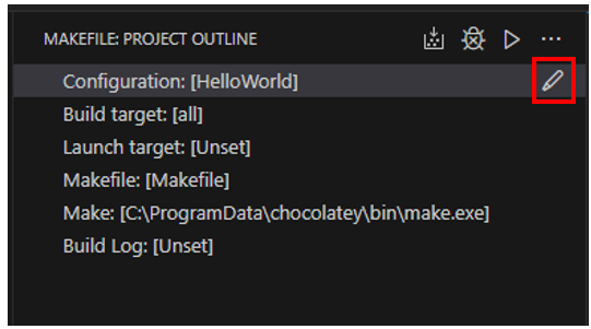 Icon to select configuration for makefile