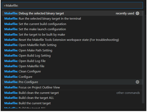 Makefile Tools commands