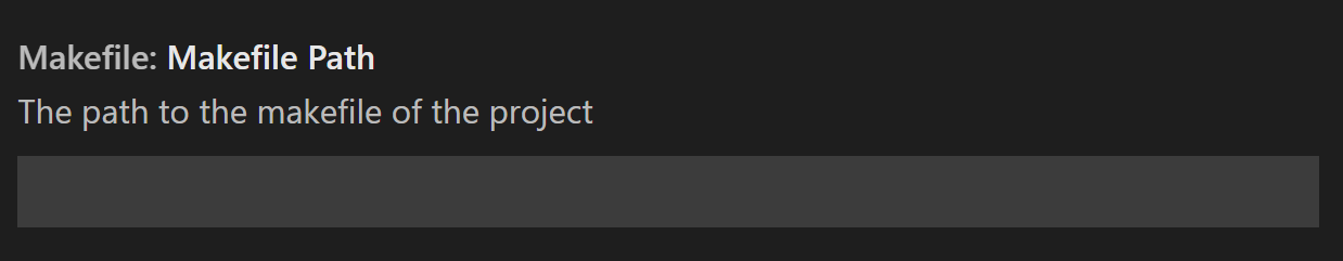 Once the extension is installed, it will activate when it finds a Makefile in your project’s root folder. If your project’s Makefile is not in the root folder, you can use the Makefile Path setting to instruct the extension where to find it. Update Makefile Path by going to File > Preferences > Settings and then selecting makefile under Extensions.