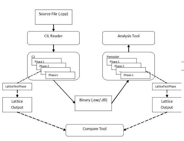 The next logical extension to our test is to automate it end-to-end. This can be done by using a Phoenix based c2 during the compile phase. Just as we plugged in the LatticeTestPhase into the PhaseList for Pereader based analysis tool, we can write a Phoenix c2 plug-in to insert the same LatticeTestPhase into c2 PhaseList. LatticeTestPhase will be executed during compile as well as after raise. A simple comparison tool can compare the outputs and provide an end to end automated test.
