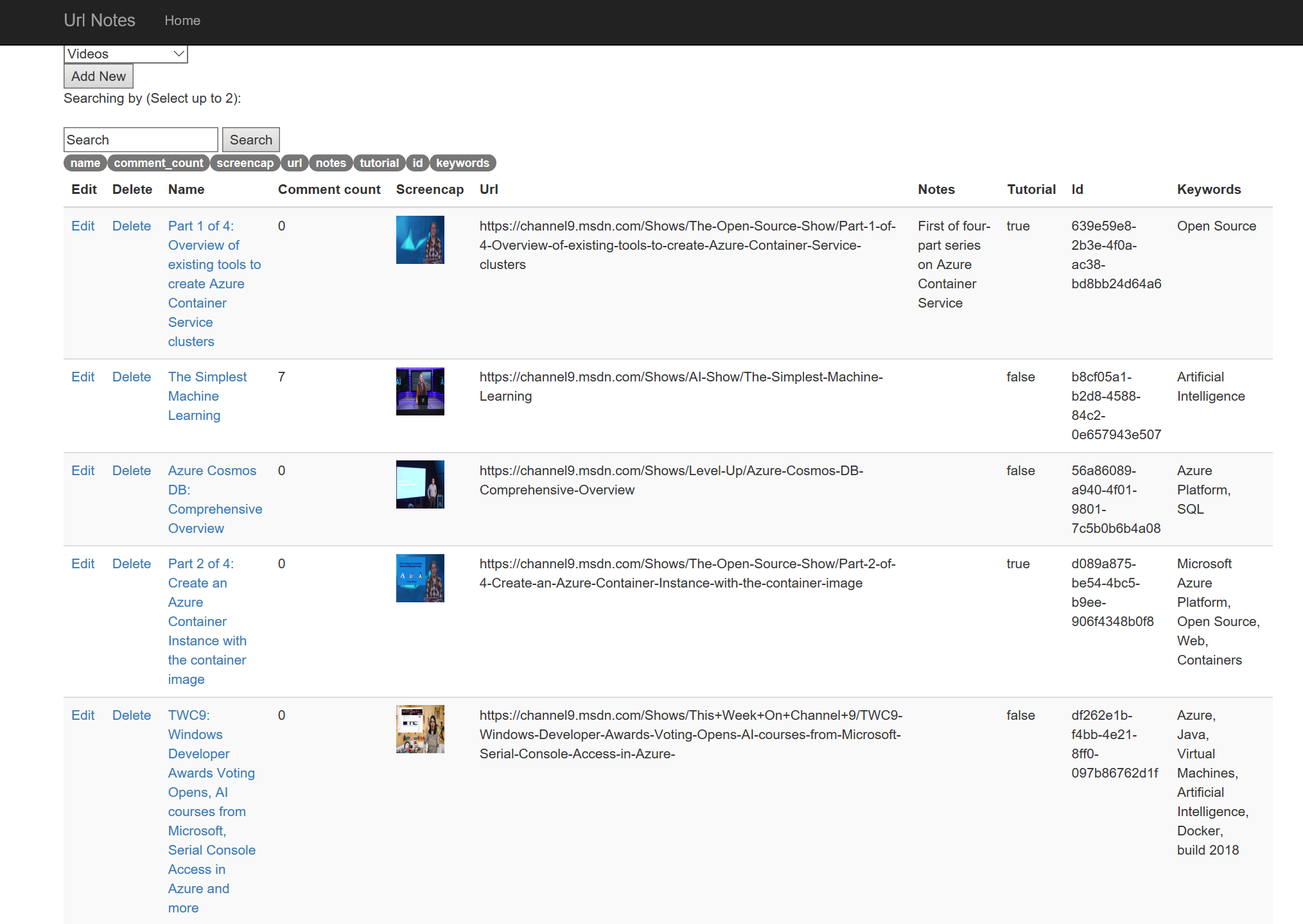 Imagine a common scenario where you expect a user to interact with your application and its underlying data. Usually, the user will want to view the data in a readable format, and a way to alter, add, or delete the data. The sample is an ASP.NET web application that allows a user to maintain a list of their favorite Microsoft documentation links and Channel 9 videos. The application’s data is stored and maintained in Cosmos DB, which contains the user populated data and web page metadata that the application finds from the provided documentation or video url.