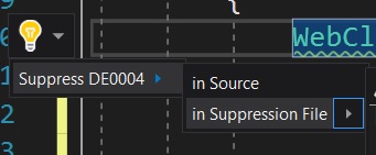 In some cases, such as when you can’t break your customers or refactoring a large legacy code base would be too expensive, you need to keep the existing API. In these cases, we recommend that you suppress the specific warnings. It can be easily done by right clicking on the highlighted member and selecting Quick Actions and Refactorings. Here you will get two suppression options: locally (in source) or globally (in a suppression file). We encourage developers to use global suppression, since if you have decided that it is OK to use some deprecated API, it should be OK to use it everywhere in your project.