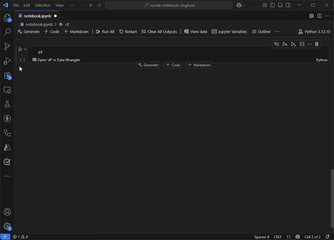 To try out this experience today, make sure you have the free Data Wrangler extension for VS Code installed. Then, run any Pandas DataFrame in your Jupyter notebook inside VS Code, and watch as Data Wrangler immediately enhances the output with powerful, interactive features (running a cell with just your DataFrame df is enough to get started).