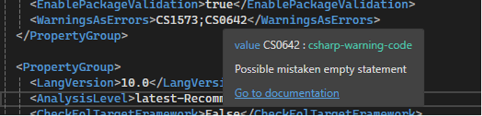 However, you can also write schemas for your own MSBuild targets to allow the MSBuild editor to provide a richer experience when editing or consuming them. If you’re an author of a NuGet package that contains build targets, you can ship that sidecar schema in the NuGet package to provide a better MSBuild editing experience for consumers of your package.