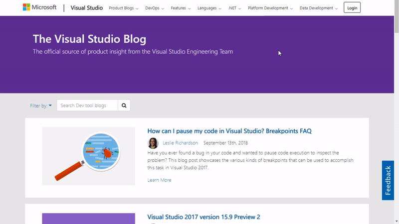 In the coming days, we’ll be moving our developer blogs to a new platform with a modern, clean design and powerful features that will make it easy for you to discover and share great content. This week, you’ll see the Visual Studio, IoTDev, and Premier Developer blogs move to a new URL while additional developer blogs will transition over the coming weeks. You’ll continue to receive all the information and news from our teams, including access to all past posts. Your RSS feeds will continue to seamlessly deliver posts and any of your bookmarked links will re-direct to the new URL location.