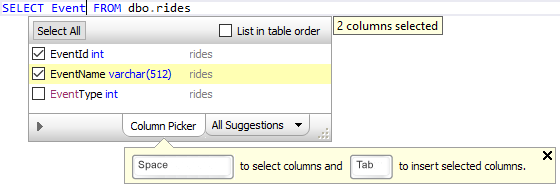 SQL Prompt Core is a suite of SQL code editing productivity enhancements that help you write SQL code efficiently. Most importantly, SQL Prompt Core offers advanced code completion that automatically suggests SQL commands, column names, and more as you type.